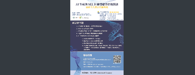 【轉知】靜宜大學教育研究所舉辦「AI生成與SEL社會情緒學習的對話:建構全人教育的新典範」學術研討會徵稿相關資訊,敬請師生踴躍賜稿為荷。