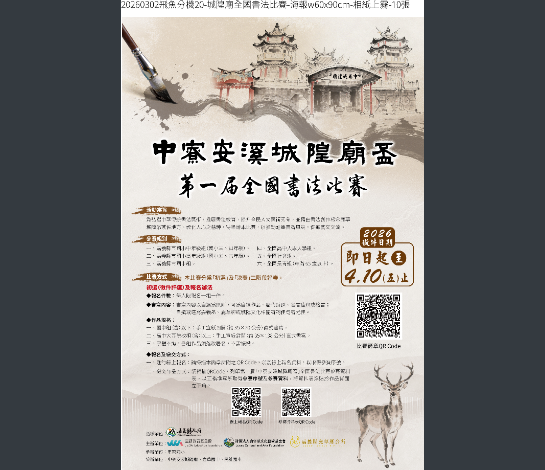 【教學組轉知】:嘉義縣政府辦理「2026第一屆『中寮安溪城隍廟盃』全國書法比賽」。