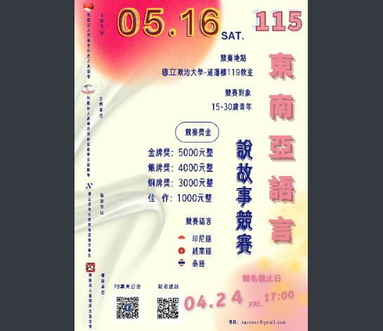 【教學組轉知】:國立政治大學東南亞語文學系、社團法人印尼之友協會,與社團法人高雄市東南亞產學交流協會合作辦理之「115年東南亞語言說故事競賽」。